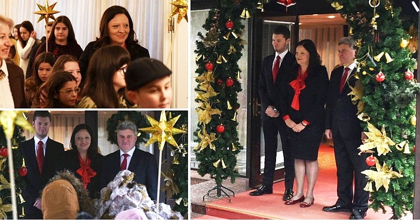 Претседателот Ѓорге Иванов заедно со првата дама Маја Иванова и нивниот син топло ги пречекаа дечињата од бадниковите поворки, кои пеејќи ја песната „Вечниот Бог“ се упатија кон нивниот дом.