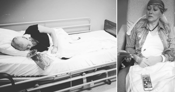 На новата фотографија, ѕвездата од „Беверли Хилс 90210“ лежи во болнички кревет комплетно изнемоштена. Фотографијата била направена еден ден по примањето на хемотерапија.