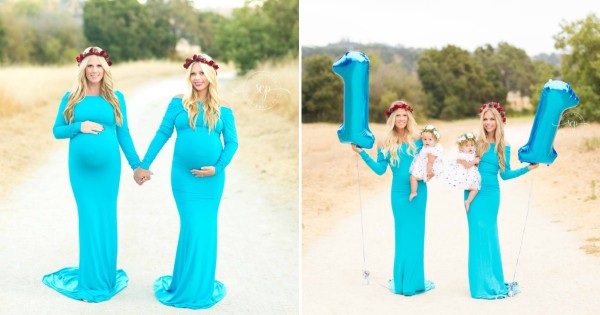 Две сестри кои биле бремени во исто време и се породиле на ист ден и во иста болница, ги прославија првите родендени на нивните ќеркички со фотосесија.