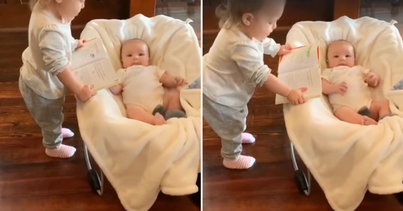 Видео Сестринска љубов: Мало девојче на бебешки јазик му чита книга на своето братче 30 април 2020, 10:15 cподели Неодоливо видео од мало девојче кое на бебешки јазик му чита книга на братчето ќе ве расположи.