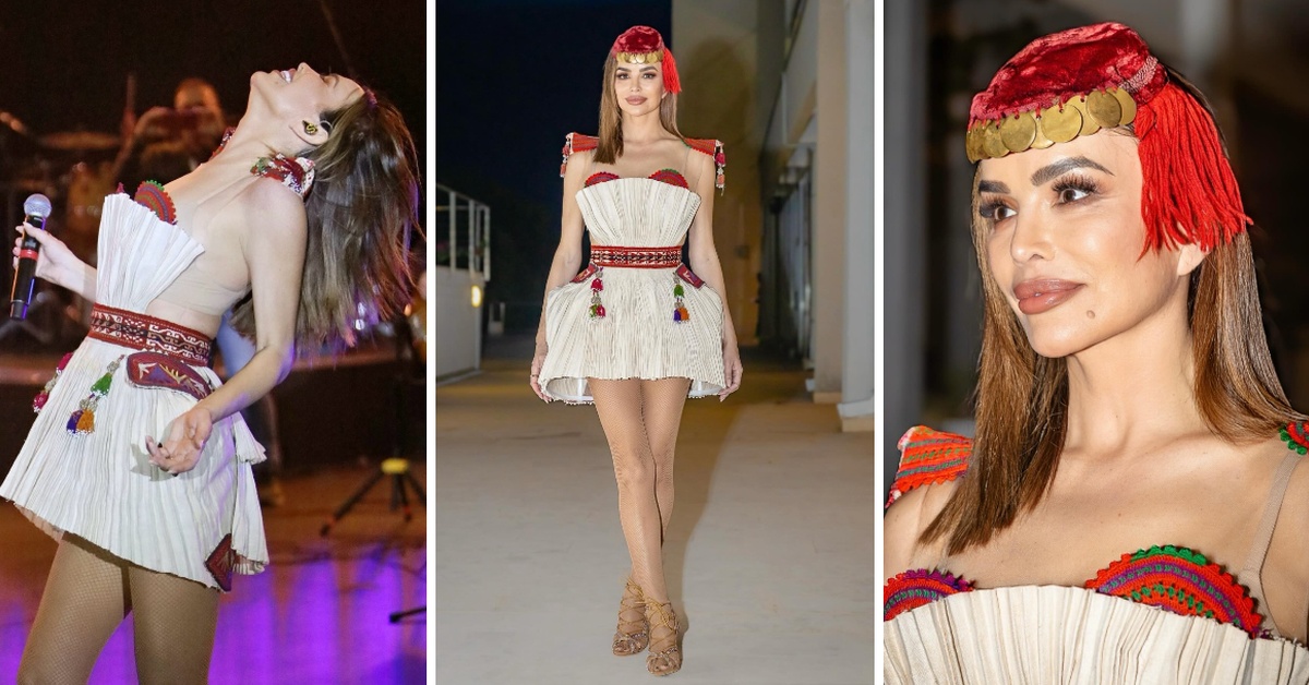 53-годишната пејачка изгледаше феноменално во уникатна креација инспирирана од народна носија. Истата била создадена специјално за неа од вештите раце на Матија Вуица и Катија Шимундиќ.