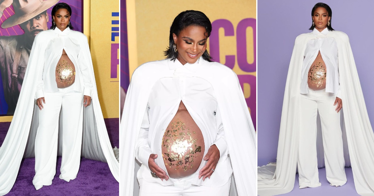 38-годишната пејачка го разголи трудничкото стомаче и го обои во златна боја за појавувањето на премиерата на „The Color Purple“ во Лос Анџелес. Славната музичарка носеше бела комбинација со долга наметка од Жорж Хобеика.