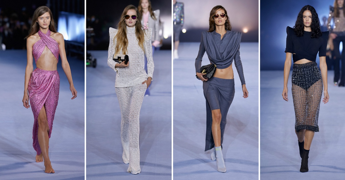 Два милиони кристали ги красат креациите од колекцијата за сезоната пролет/лето 2021, во која акцентот е ставен на нагласените раменици.
