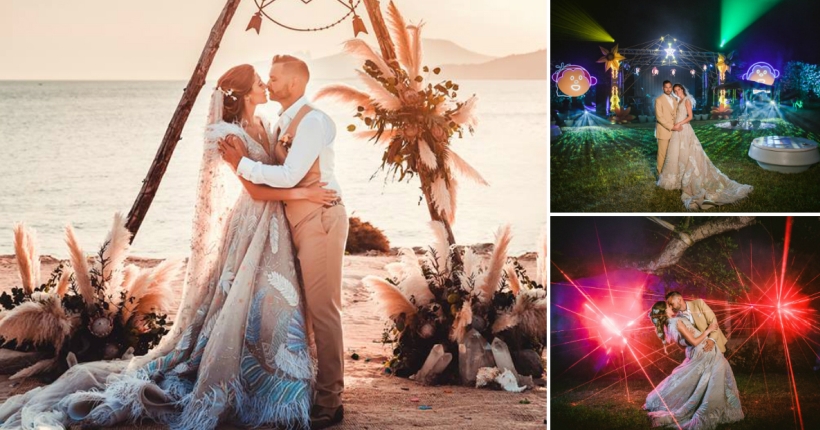 Музичките фестивали и бохо модата беа инспирација за свадбата на Хасиба Фриха и Кентон Оксли. Парот се заколна на вечна љубов за време на церемонија на Ибица.