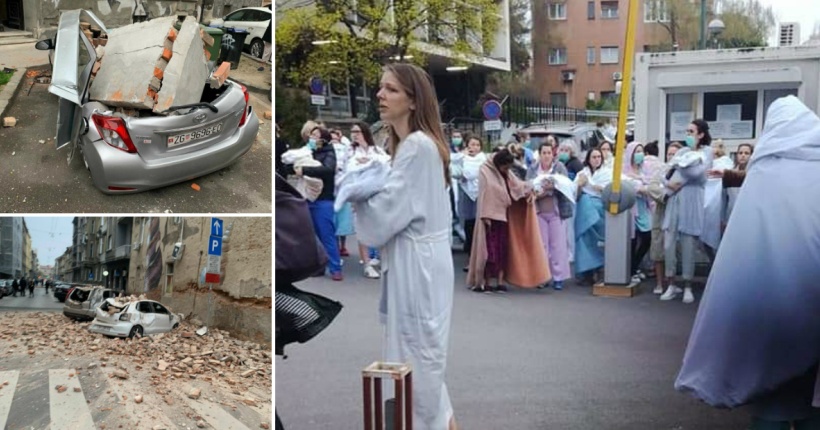 Силна фотографија по земјотресот во Загреб: Родилки со бебињата во рацете стојат во дворот од болница
