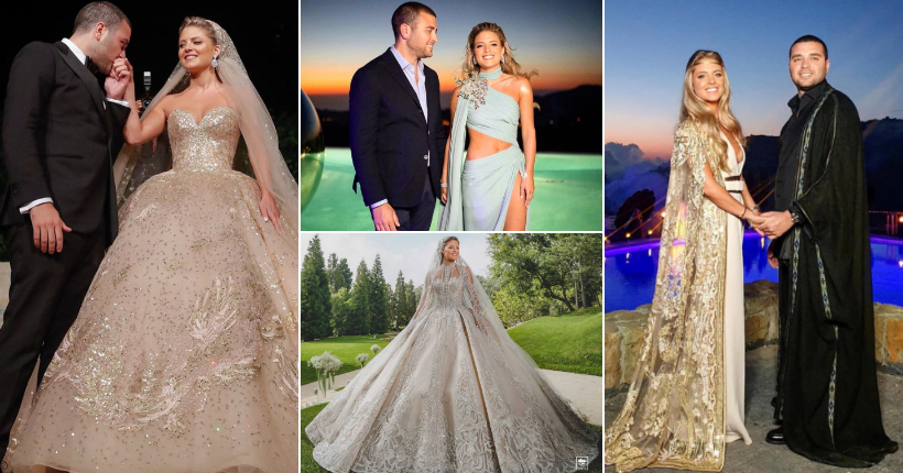 Прославите започнаа со забава во клубот „Le Plateau de Bakish“ во либанското еко-село Бакиш. Невестата носеше бел комбинезон со златен колан и наметка од врвниот либански дизајнер.
