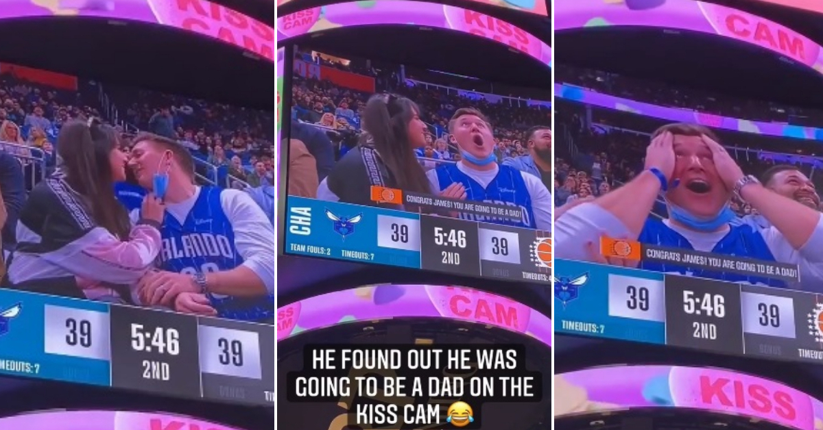 За време на паузата на спортски натпревар двајцата партнери беа прикажани на екранот на „камерата за бакнеж“. Откако се бакнаа на екранот се појави натпис: „Честитки Џејмс. Ќе станеш татко“.