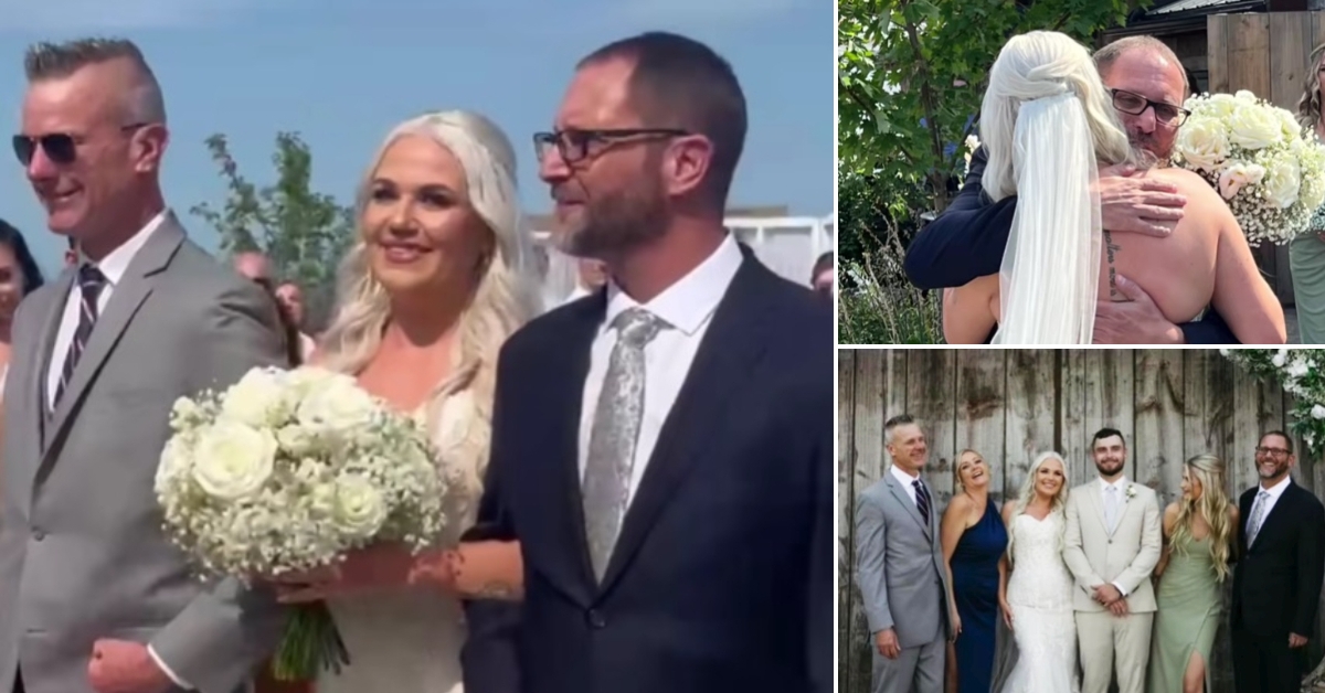 Татко накратко ја прекина свадбената церемонија на ќерка си и го повика очувот заедно да ја испратат до олтарот.
