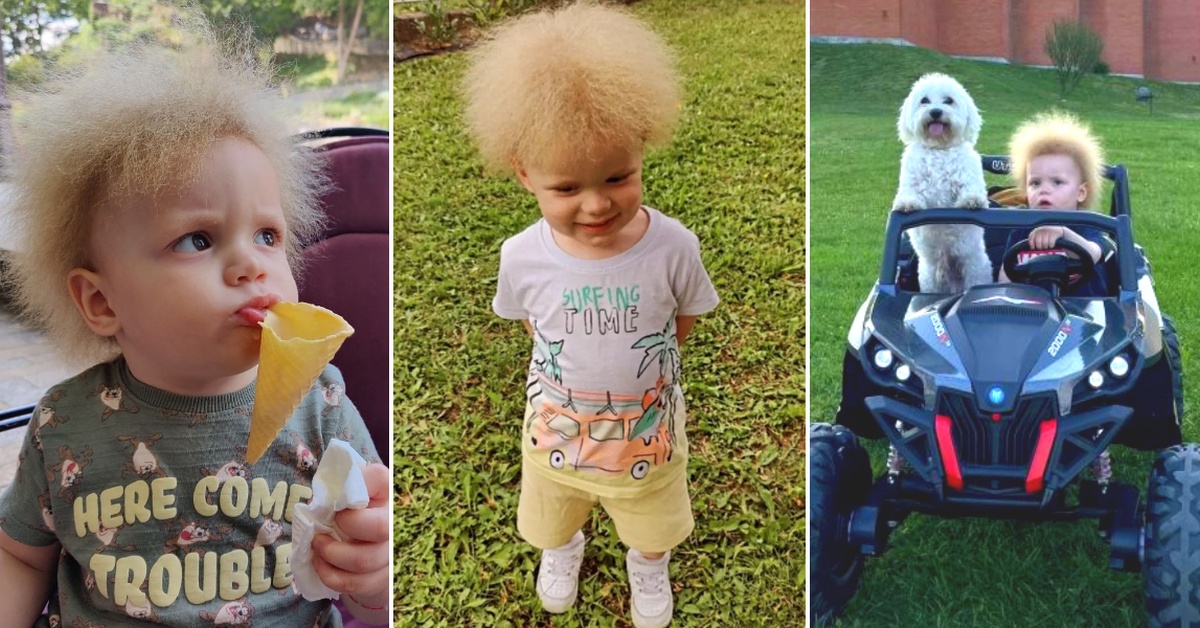Малиот бушавко има нескротливата руса коса, предизвикана од синдром на коса која не се чешла (uncombable hair syndrome).