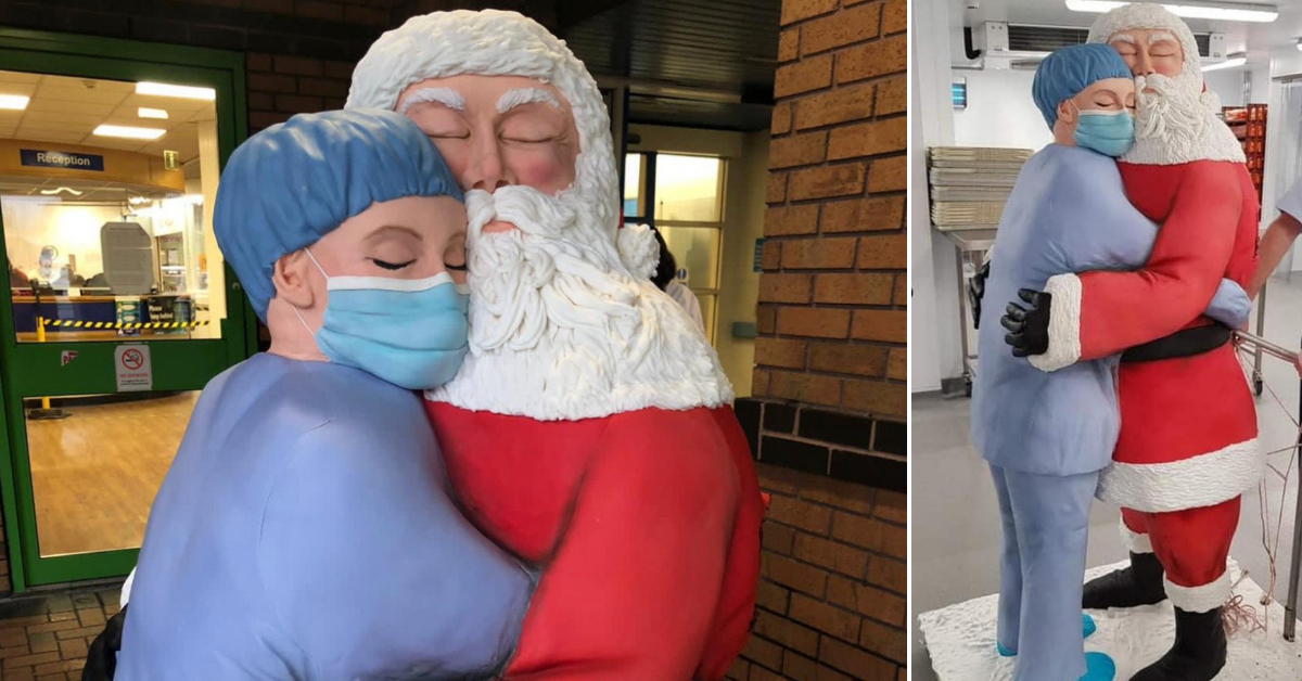 Сладок гест на благодарност: Жена направи торта од прегратка на Дедо Мраз и медицинска сестра висока 180 см