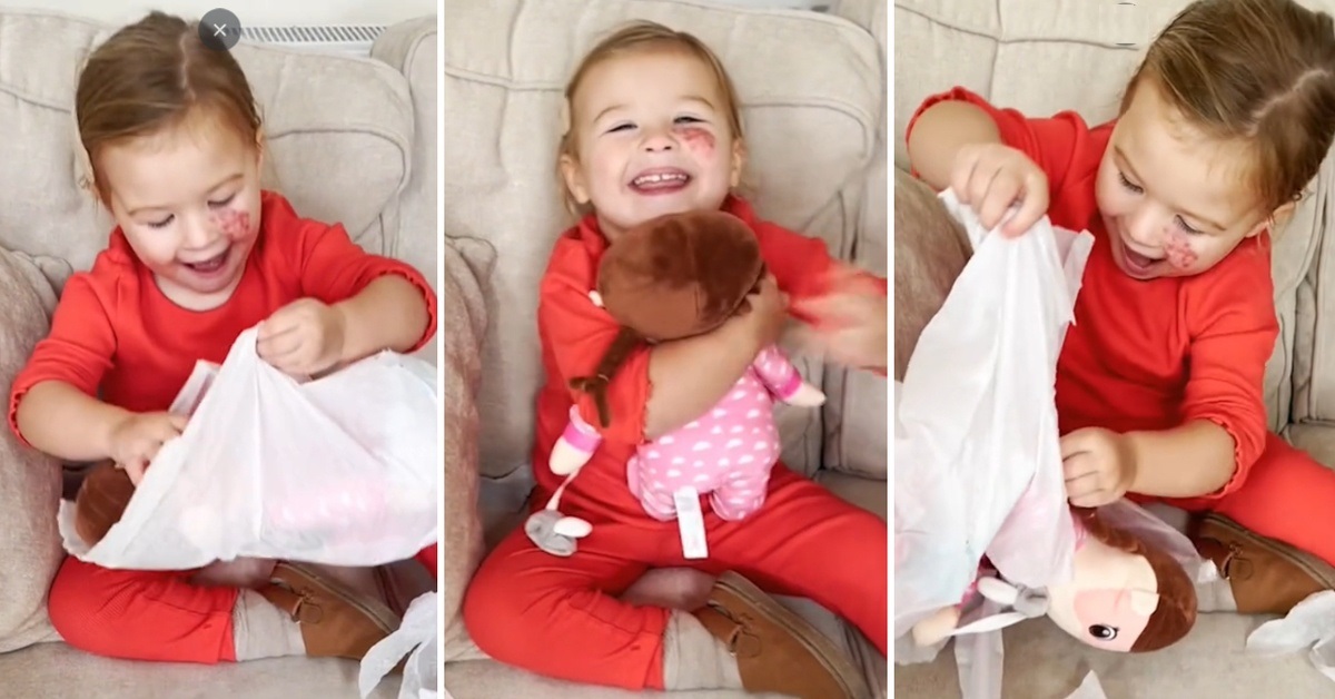 Видео од мало девојче, кое се радува кога ќе добие кукла со истиот белег на лицето, ќе ви го разубави денот.