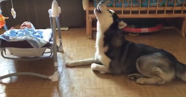 Хаска, која лојално лежи покрај мало бебе и го смирува со завивање кога тоа ќе заплаче, растопи илјадници срца низ светот.