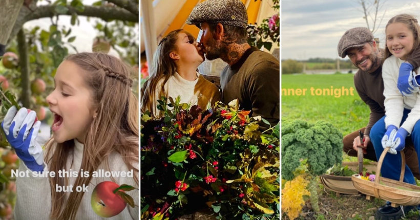 45-годишниот поранешен фудбалер и 9-годишното девојче собираа овошни плодови и зеленчуци на фарма за органска храна во Глостершир. А од собраните есенски цвеќиња, дуото татко-ќерка изработи венци.