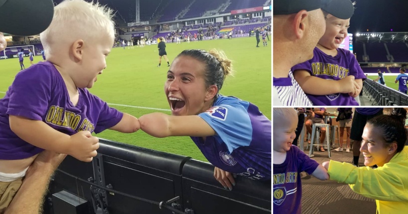 Мало момче бликаше од среќа кога се сретна со фудбалерка која, исто како него, е родена со една рака.
