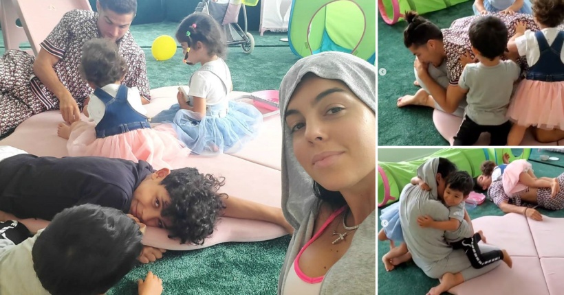 Џорџина Родригез објави слатко семејно видео во кое Кристијано Роналдо ја заробува под себе, а потоа трите нивни мали деца го туркаат и ја спасуваат.