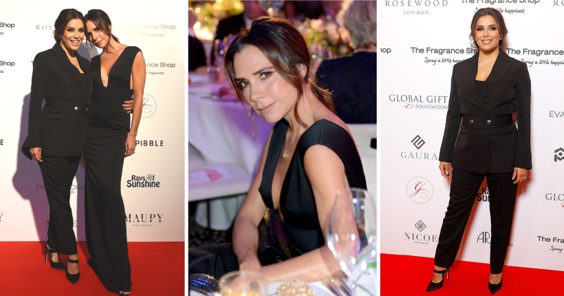 На добротворниот настан, на шармантната актерка ѝ се придружи Викторија Бекам. Двете пријателки зачекорија на црвениот тепих во црни креации од ателјето на Бекам.