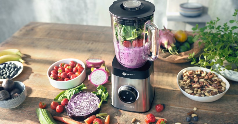 Уште еден многу важен фактор во подготовката на совршеното смути е блендерот кој го користите за правење на смутито. Не секој блендер ќе направи одлично смути. На пазарот постојат таканаречени high speed блендери кои даваат подобри резултати за блендирање. На пример, high speed блендерот на Philips има моќен мотор from 1400W и револуционерна ProBlend 6 3D технологија на блендирање која издвојува повеќе хранливи состојки од овошјето и зеленчукот. Со своите 35.000 ротации на сечилата во минута, овозможува целиот процес на правење на смути да е брз и лесен, а смутито да има мазна текстура за лесно пиење. Доаѓа во комплет со голем бокал доколку сакате да направите доволно смути за целото семејство, како и со две чаши за носење, со што можете да си направите вкусно смути за на работа или за на спортување. Најдобриот дел е што можете да си направите смути директно во преносните чаши така што нема да има потреба од дополнително чистење.