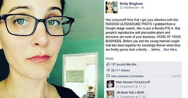 33-годишната Американка доби аплаузи од илјадници жени откако објави фотографија од ултразвук на Facebook, а во описот ја напиша следната порака: