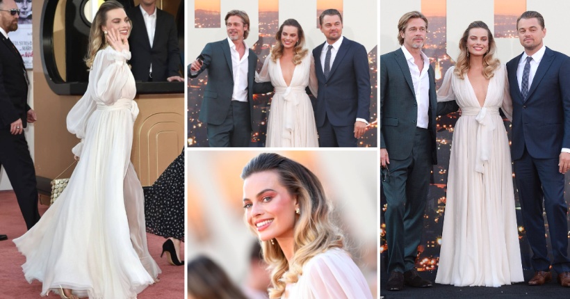 Со најубавата придружба: Марго Роби во бело покрај Бред Пит и Леонардо Дикаприо на премиера