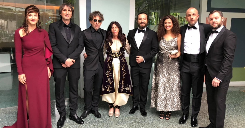 На фотографијата, во центарот е хероината Атиџе Муратова, а покрај неа се режисерите Тамара Котевска и Љубо Стефанов, кинематограферите Фејми Даут и Самир Љума, продуцентот и монтажер Атанас Георгиев, Рана Еид и Благоја Неделковски.