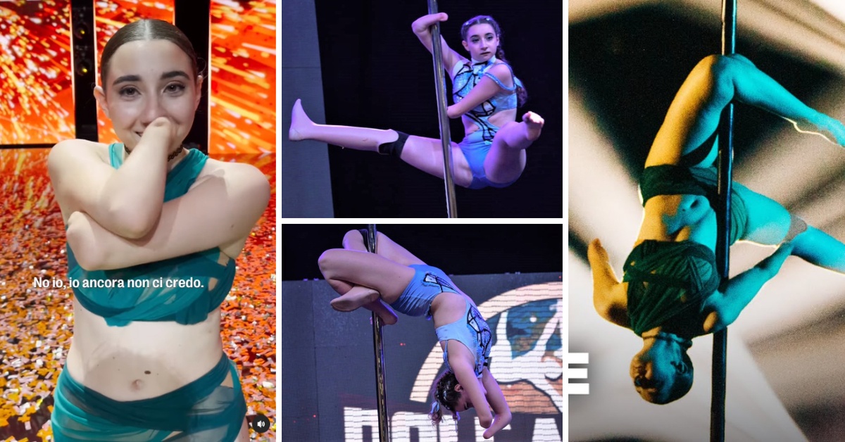 Инспиративната Италијанка, која е родена со нецелосно развиени горни екстремитети и без една нога, ја освои публиката танцувајќи на шипка и одушеви со својата упорност и верба во себе.
