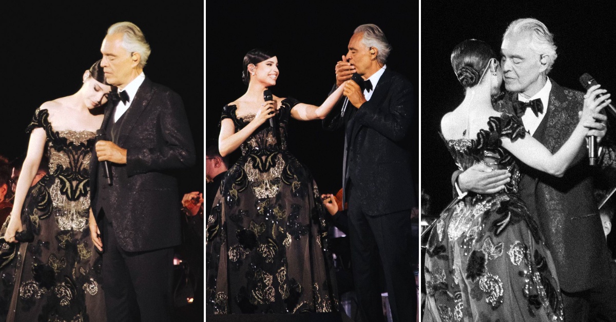 31-годишната пејачка и актерка ја имаше честа да запее со легендарниот оперски пејач во црна креација од колекцијата висока мода есен/зима 2023 година на либанскиот дизајнер Ели Сааб. Убавата Американка му се заблагодари на Бочели за остварувањето на сонот да настапува со него „под тосканската Месечина“.