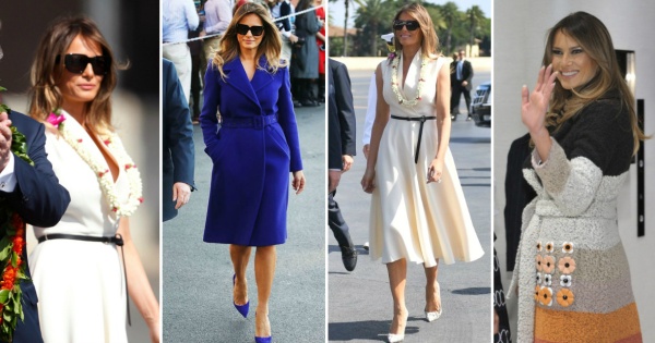 Кога пристигнаа во Токио, првата дама на САД шармираше во палто од колекцијата pre-fall 2017 на Fendi. Својот стилски избор, таа го комплетираше во салонки од Маноло Бланик.