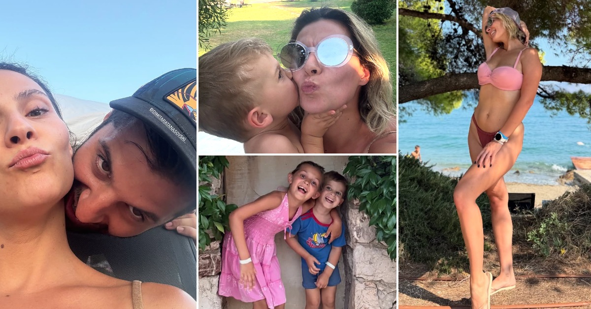 Македонската пејачка и познатиот водител уживаа на полуостровот Пелопонез во друштво на нивните две мали дечиња, ќеркичката Илина и синот Кирил.