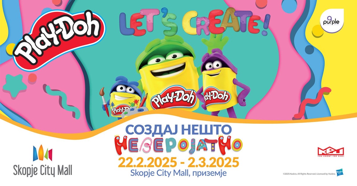 Скопје Сити Мол и Play-Doh те очекуваат на незаборавниот креативен настан за сите деца што ќе трае цела недела, секој ден од 12:00 до 20:00 часот. Доаѓаш, нели?