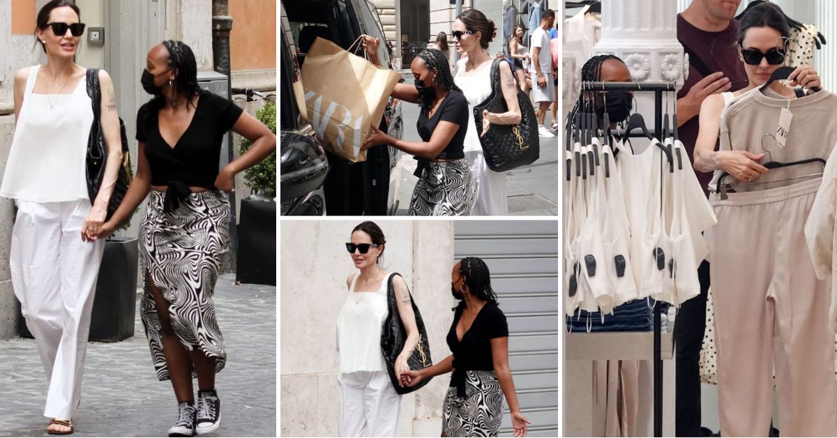 Џоли ја разгледуваше најновата понуда на шпанскиот бренд додека беше облечена во бела летна комбинација и носеше црна чанта од Сен Лоран.