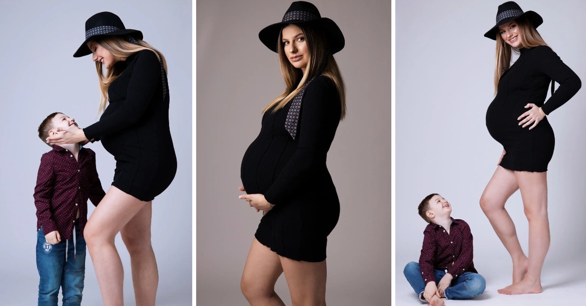 На Instagram, Нина сподели фотографии од фотосесија со малиот син во која го истакна трудничкото стомаче во тесен фустан.