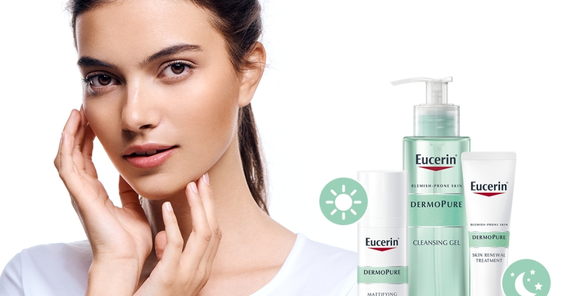 Сумирано, пациентите со масна кожа и акни имаат потреба од спацијално разработени производи за нега на нивната кожа. Научно-истражувачкиот тим на Eucerin ја создаде DermoPure – зелената линија наменета за нега на масна и проблематична кожа, во која беше имплементирана специјална технологија т.н. липозомен транспортен систем. Оваа технологија овозможува селективно дејство на активните супстанции само во изводните канали на лојните жлезди, точно на местата каде е и проблемот на масната и проблематична кожа. Со тоа се избегнува дејство на здравата кожа, односно сува и затегната кожа која се лупи и која е чувствителна на сонце. Благодарение на липозомниот транспортен систем, производите од зелената линија можеме слободно да ги користиме и во сончевиот период на годината. На располагање имаме: