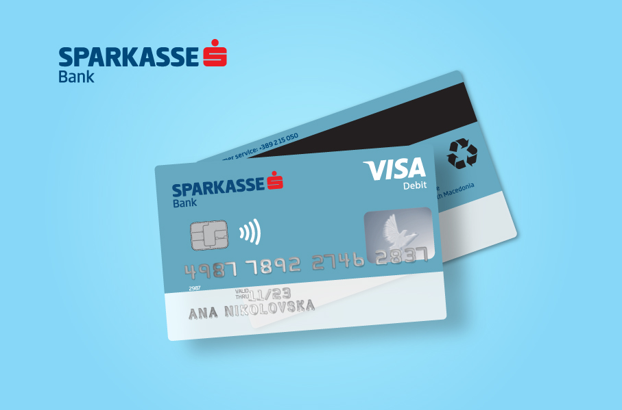 Како дел од зелената транзиција, за првпат во банкарскиот сектор во земјава Шпаркасе Банка започна да издава Visa Eco картички од рециклирачки материјал, со посебни својства на разградливост. Производството на картички на разградлив материјал, ќе влијае да се заштедат минимум 300 кг пластика произведена и одложена во животната средина годишно, или еквивалент на 1.800 кг CO2.