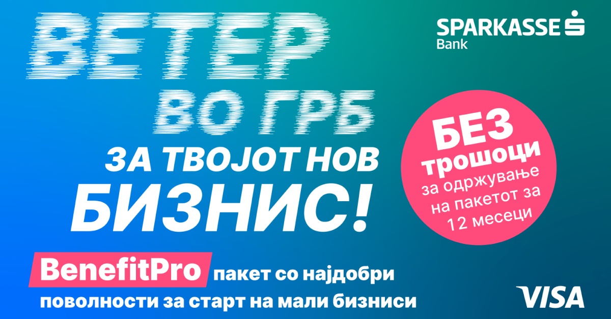 Шпаркасе Банка изработи уникатен пакет дизајниран специјално за нови и мали бизниси, сè со цел позиционирање како доверлив и стабилен партнер, силен ветар во грб и постојан сојузник во финансиските предизвици на своите клиенти.
