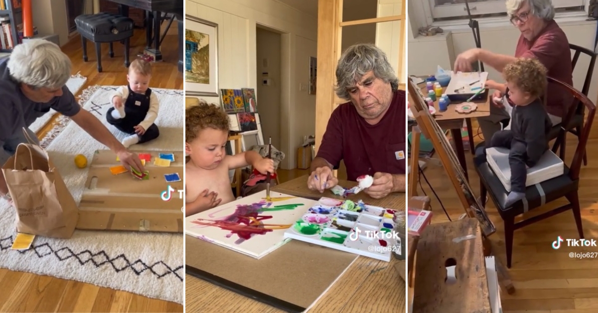 Видео од дедо кој грижливо го учи внучето да слика ќе ви го стопли срцето. Тоа беше споделено од Лоренда, чиј татко научил да слика откако заминал во пензија, а сега го учи и нејзиниот син како да ги распознава и меша боите. Она што е најважно е среќата и ентузијазмот кои му се гледаат на лицето додека го прави тоа.