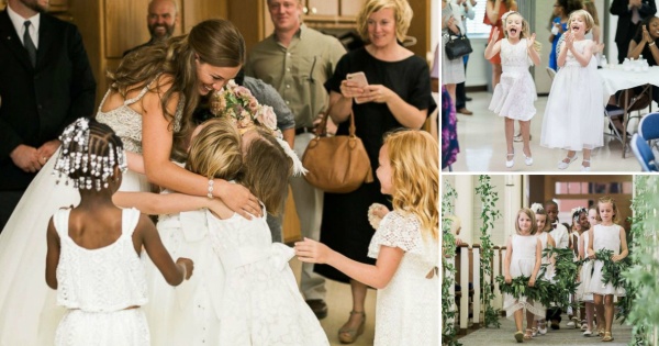 На свадбената церемонија во Индијана, дечињата ја водеа среќната невеста кон олстарот. Дваесетте момчиња и девојчиња изгледаа преслатко облечени во бело и со топли прегратки ѝ честитаа на Мариел.