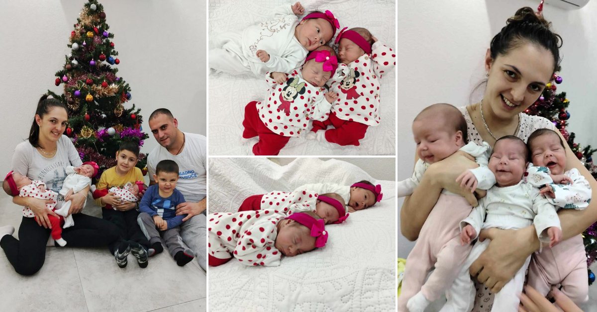 Трите бебиња се зачнати по природен пат. Бебето кое докторите не го видоа до пред породување помина 23 дена во болница. Но, за среќа, за време на празниците целото семејство беше заедно дома.