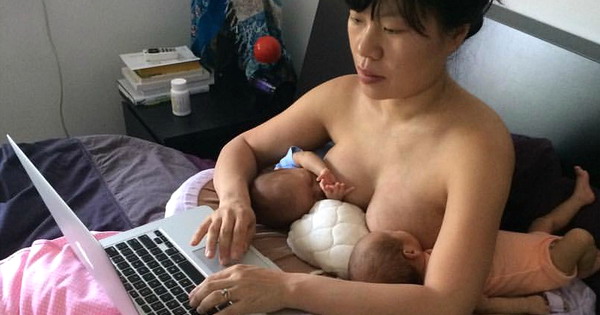 На фотографијата, Кох, која е скулптор и уметник од Њујорк, ги дои своите близначиња додека работи на својот лаптоп. Во описот таа напиша: „Марина го знае своето искуство и тоа може да важи за неа, но тоа не важи за сите. Мајчинството лично мене ми помогна да бидам подобра артистка. Научив да бидам поефективна со своето време, да го приоретизирам она што е важно и да го оставам останатото, како и да бидам шампион по мултитаскинг. Научив да функционирам со малку спиење и надвор од хаосот, лудоста и тортурата.“
