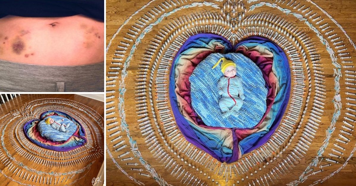 Тие објавија моќна фотографија од третото дете кое лежи сред срце од шприцови кои биле искористени за време на ин витро постапките, за визуелно да покаже низ што сè поминуваат жените за време на вонтелесното оплодување.