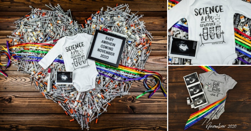 Викторија и Чез Амрхејн со фотографии соопштија дека ќе станат родители. Во фокусот стои срце од над 800 шприца, бебешко боди и фотографии од ултразвук.