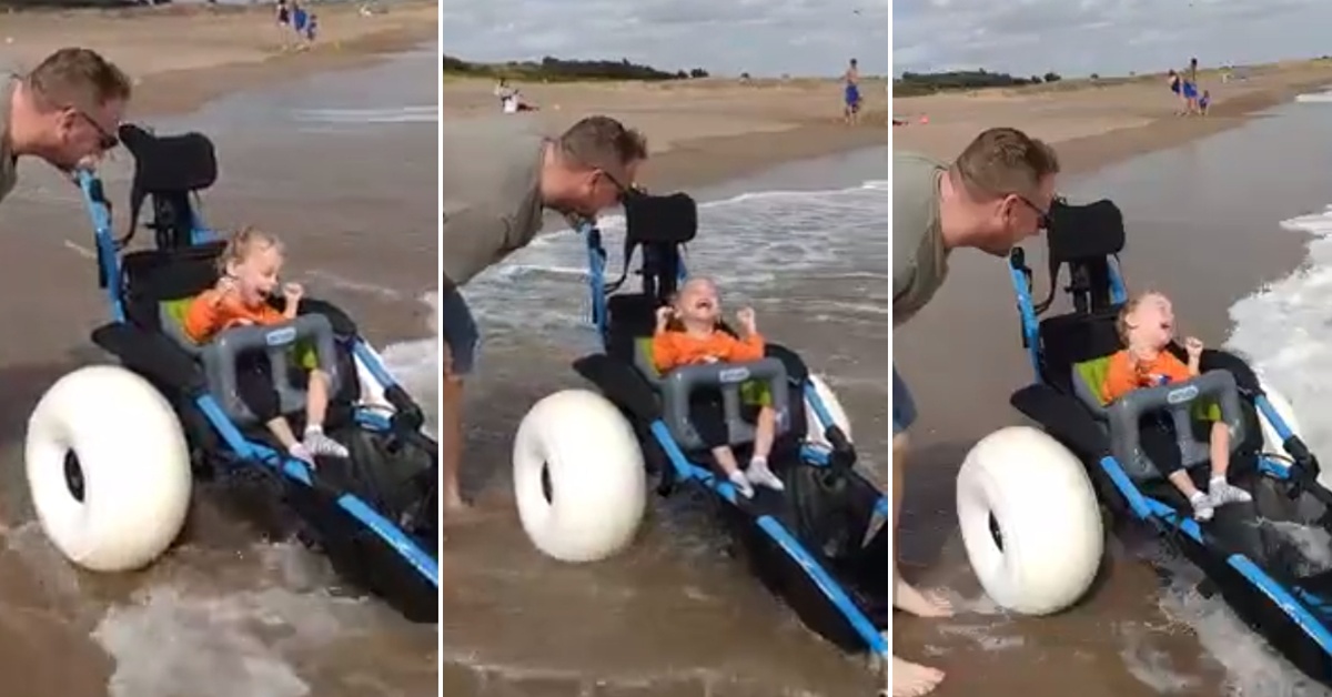 Видео од детенце со церебрална парализа, направено за време на неговата прва посета на плажа, нема да ве остави рамнодушни.