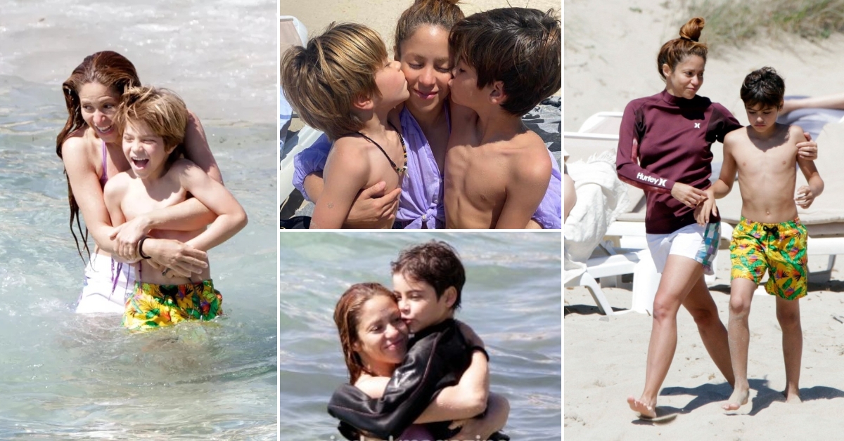 45-годишната музичарка во природно издание се бакнуваше, прегрнуваше и пливаше со 9-годишниот Милан и 7-годишниот Саша. Згодната Колумбијка носеше костим за капење која самата го дизајнираше.