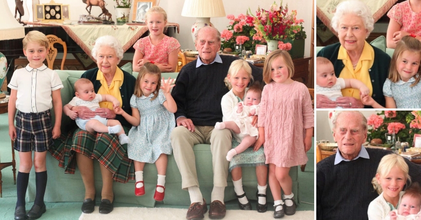 Бидејќи фотографијата е од 2018 година, не се присутни нивните три најмали правнучиња. Принцот Хари и Меган Маркл го добија Арчи во мај 2019 година, а принцезата Јуџин и Зара Тиндал добија момчиња годинава.