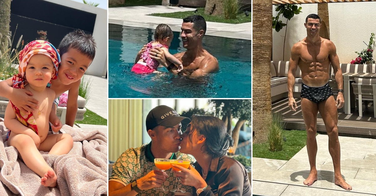 38-годишниот фудбалер, кој во моментов живее во Саудиска Арабија, сподели фотографии од слатки семејни моменти со децата и саканата Џорџина Родригез. На нив, тој плива, се забавува и ужива во базен заедно со слатките наследници, а Џорџина го набљудува со насмевка.