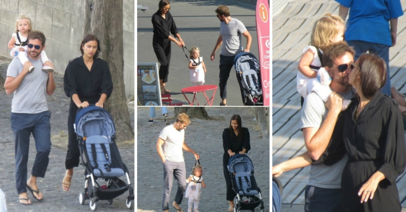 Среќно семејство: Ирина Шајк и Бредли Купер се бакнуваат за време на прошетка со ќеркичката во Париз