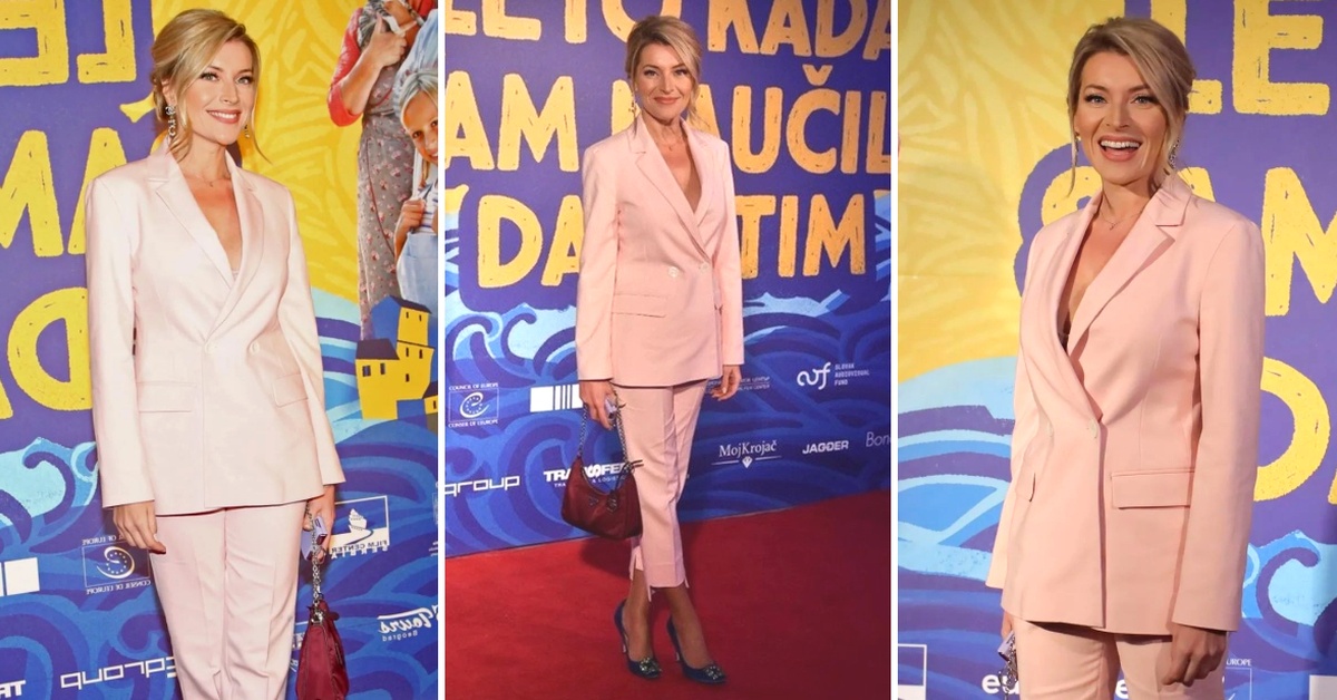 37-годишната актерка од серијата „Андрија и Анѓелка“ изгледаше шармантно во розов костум. Својот стилски избор, таа го надополни со обувки во кралско сина боја со впечатлив детаљ од Маноло Бланик.