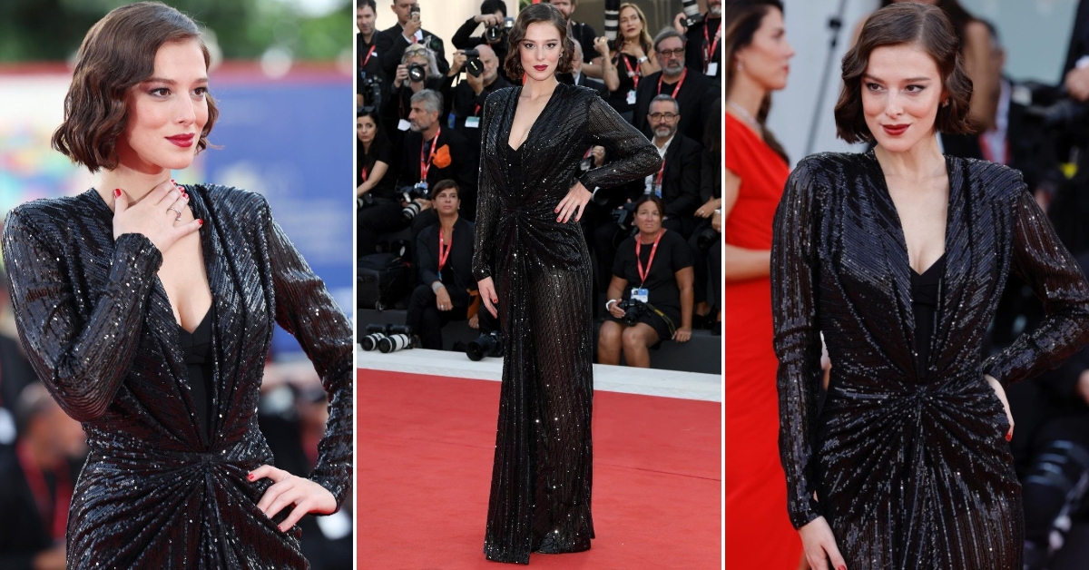 На црвениот тепих на Филмскиот фестивал, 28-годишната актерка се појави во блескава црна креација од Марија Тарлаќ. Убавата Србинка присуствуваше на премиерата на филмот „Ferrari“ со Пенелопе Круз и Адам Драјвер, режиран од Мајкл Ман.