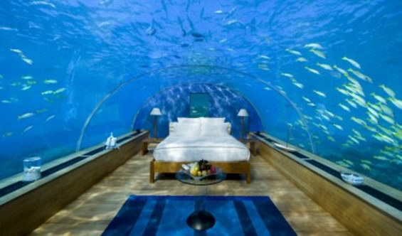 Стаклениот апартман, кој е сместен на дното на Индискиот океан, е уникатна можност да лежите в кревет и му да се воодушевувате на подводниот растителен и животински свет.