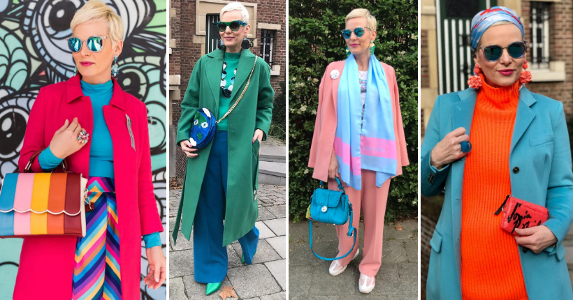 Грит Моенс од Белгија не дозволува возраста да ја спречи да експериментира со силните бои и смелите шари. Напротив, таа секојдневно докажува дека стилот само се подобрува со годините.
