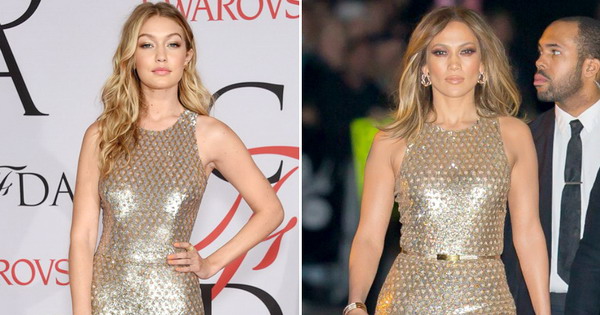 Џиџи Хадид vs. Џенифер ЛопезЗа своето гостување во шоуто на Џими Кимел, Џенифер избра златна креација на Корс. 46-годишната актерка и пејачка блесна во златен комбинезон, инспириран од 70-тите години.